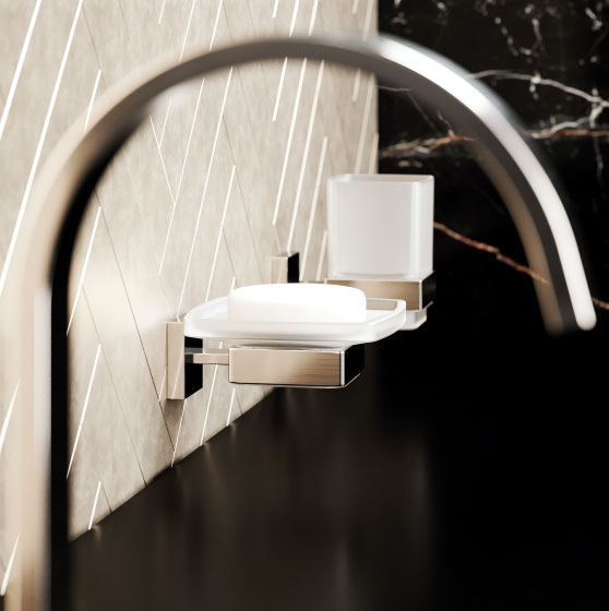 The puristic elegance continues throughout the entire bathroom range – from the washbasin and bathtub to the bidet and shower taps – and a variety of accessories in matching design. Hand-worked, exclusive surfaces are combinable with crystals in clear and black and define the style in many ways – from a modern work of art to a stylish, luxurious feel.